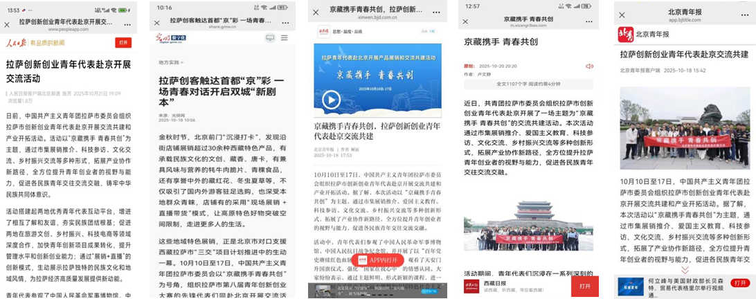 2025年10月10日至17日受中國共產(chǎn)主義青年團拉薩市委員會委托,投資北京承辦了拉薩市創(chuàng)新創(chuàng)業(yè)青年代表赴京開展交流共建和產(chǎn)業(yè)開拓活動。本次活動以“京藏攜手 青春共創(chuàng)”為主題,通過市集展銷推介、愛國主義教育、科技參訪、鄉(xiāng)村振興交流等多種創(chuàng)新形式,拓展了拉薩創(chuàng)新創(chuàng)業(yè)青年產(chǎn)業(yè)協(xié)作新路徑,全方位提升青年創(chuàng)業(yè)者的視野與能力,促進了各民族青年交往交流交融,鑄牢中華民族共同體意識。